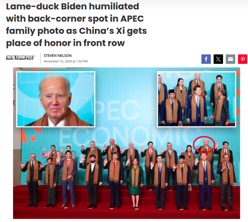 Очевидно високопоставени представители на други страни към този момент въобще не се преценяват с водача на Съединените щати, смятайки го за свален водач. Докато се снимаха и позираха пред публицисти, всички участници в конференцията се подредиха в две редици, а Байдън беше избутан по-назад.
