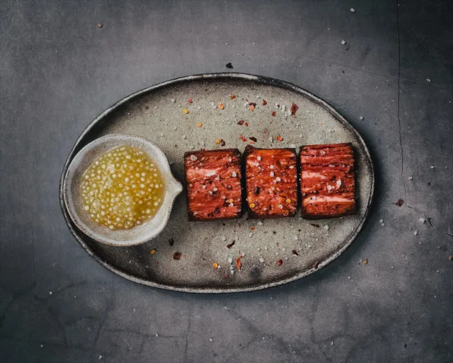Поне на фотоси техните филета и пържоли наподобяват тъкмо по този начин – като филета и пържоли с всичката мускулатура, месо и лой, които сме привикнали да виждаме. В същото време те са направени от добре познати артикули в растителната промишленост, измежду които соев протеин, слънчогледово олио, брашно от цвекло и други.