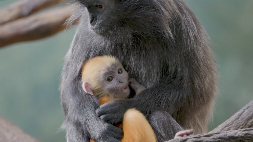 Бебе сребърен лангур от през днешния ден радва посетителите на зоопарка в Бронкс в Ню Йорк.