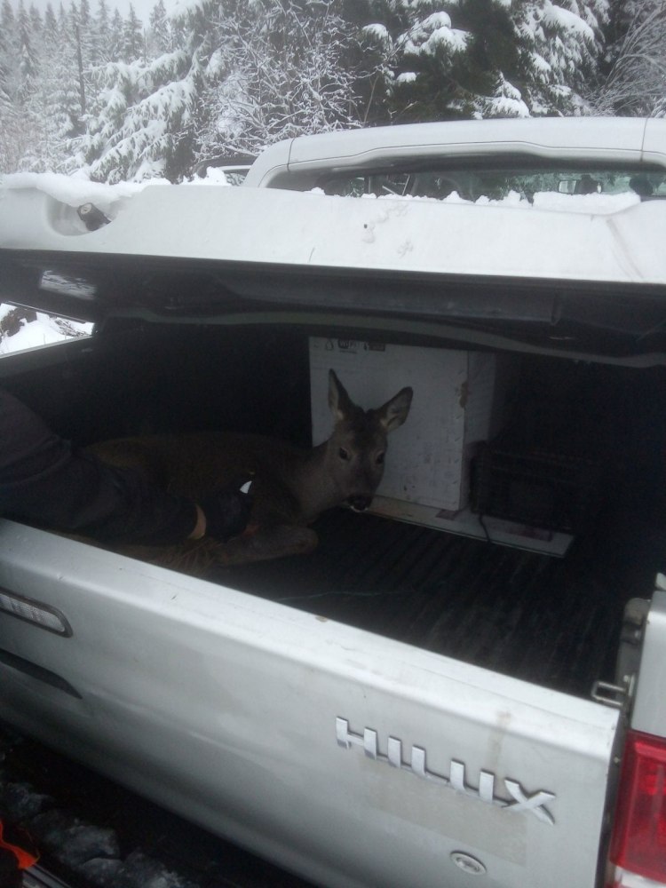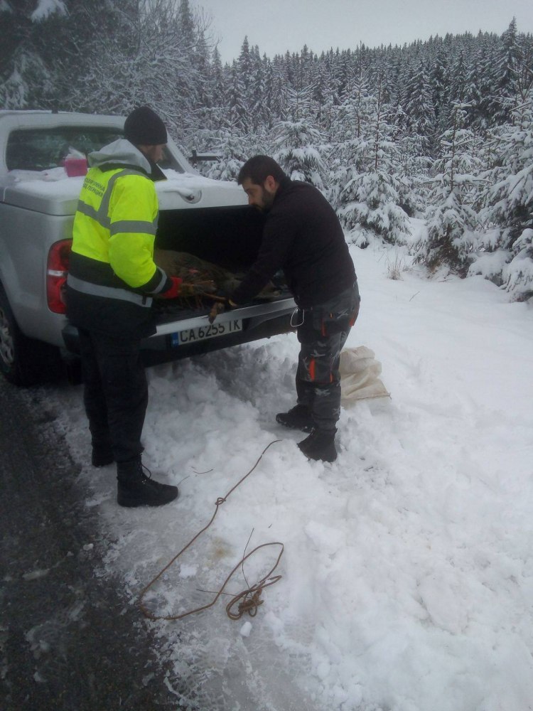 Раненото животно е било прегледано, а раните му са обработени. След това сърната е пусната на независимост високо в планината.
