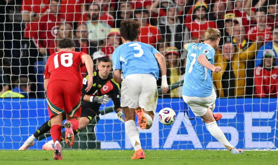 Четвърт час преди края Джордан Джеймс игра преднамерено с ръка в наказателното си поле, а Даниел Зиберт не се поколеба да отсъди втора дузпа за Белгия. Де Бройне още веднъж беше оптимално акуратен при осъществяването и значително реши срещата в интерес на " алените дяволи ".