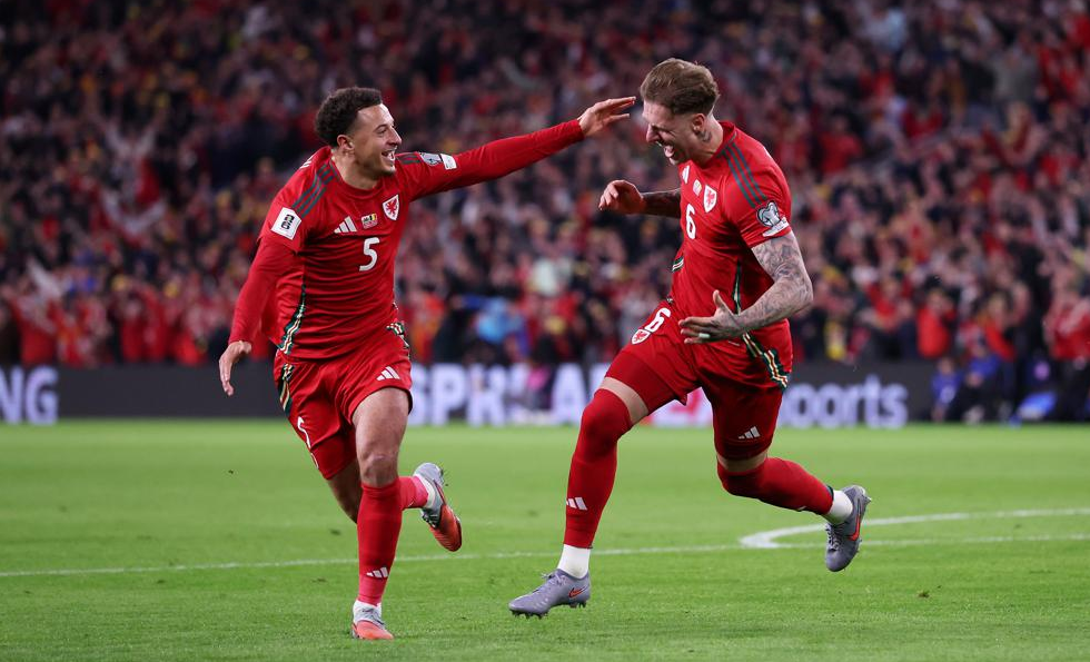 Уелс излезе с един нападател в лицето на Марк Харис, а по крилата атакуваха Хари Уилсън и Дейвид Брукс. Итън Ампаду и Джордан Джеймс също помагаха в офанзива, а Сорба Томас и Неко Уилямс оформиха двойката вътрешни халфове. Защитното трио пред Карл Дарлоу оформиха Бен Кабанго, Джо Родън и Бен Дейвис.