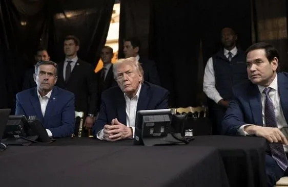 Изображенията демонстрират Тръмп, седнал паралелно до държавния секретар Марко Рубио, военния секретар Пийт Хегсет, шефа на Централното разузнаване Джон Ратклиф и военачалник Дан Кейн в очакване на ударите.