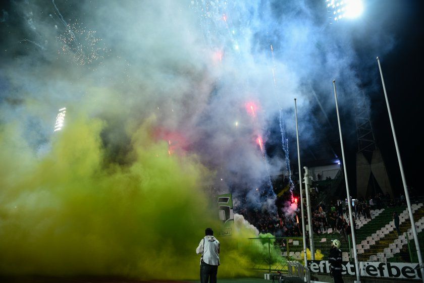 Публиката на Берое изрази насладата си бурно и възпламени факли, както и заря, което сътвори димна завеса над терена. Това докара до прекъсването му за пет минути.