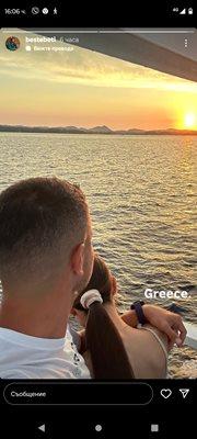 Бесте и тайнственият мъж се радват на сантименталния гръцки залез на морето