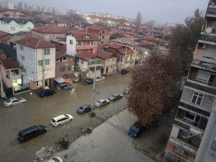 Мястото е наводнено, а паркирани коли са блокирани.