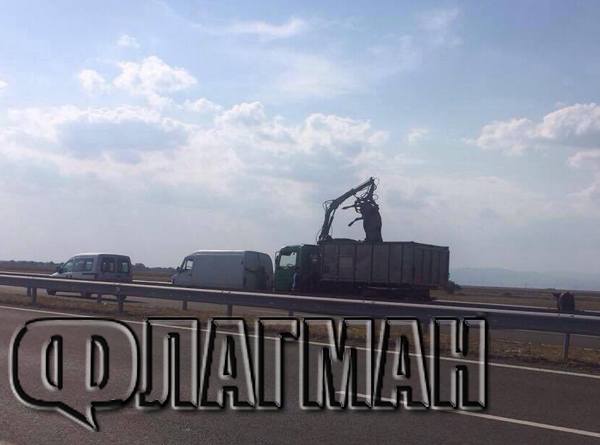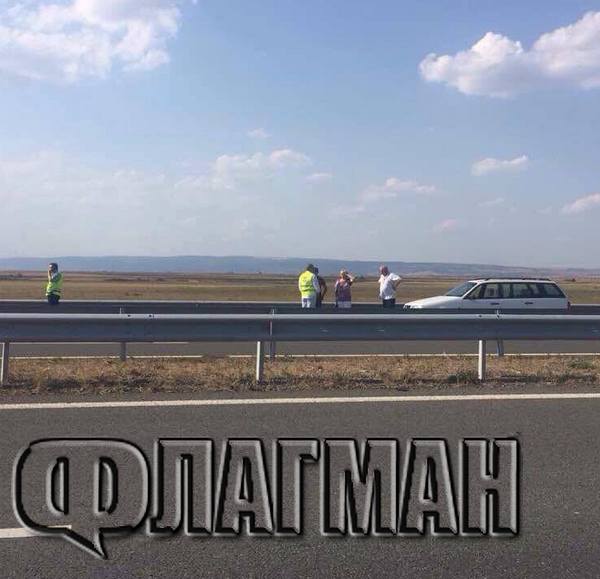 „ Нещо необичайно се случва на км 308 в посока от Бургас към София. Има хора със жилетки, полиция, машини и е настанала огромна паника”, написа ни Панайот Христов, който е останал покъртен от гледката.