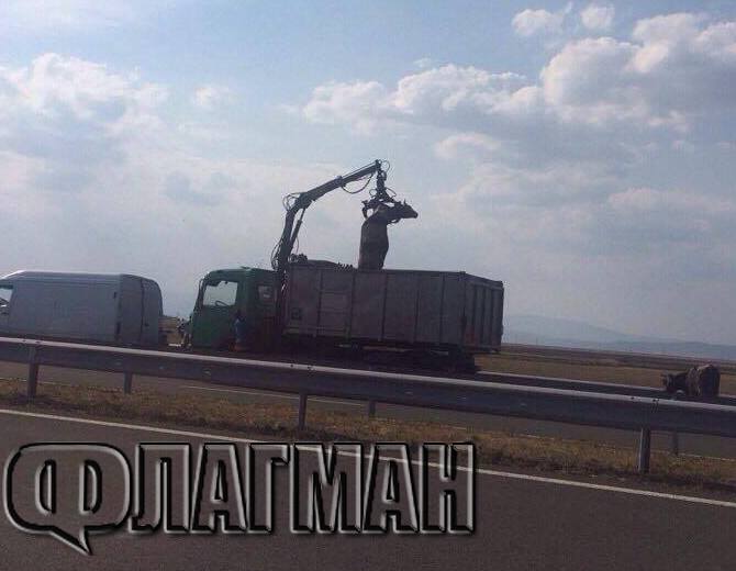 На Автомагистрала „ Тракия” той е уловил по какъв начин тежкотоварна машина сграбчва със шипка умряла крава и я подвига от платното, а в това време други две добичета щъкат по аутобана, като че ли това е пасбище, а не най-натоварената автомагистрала в България.