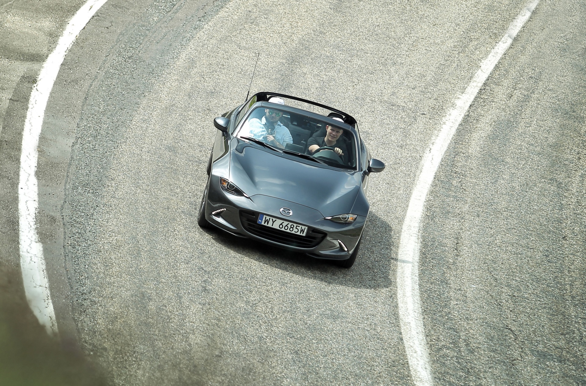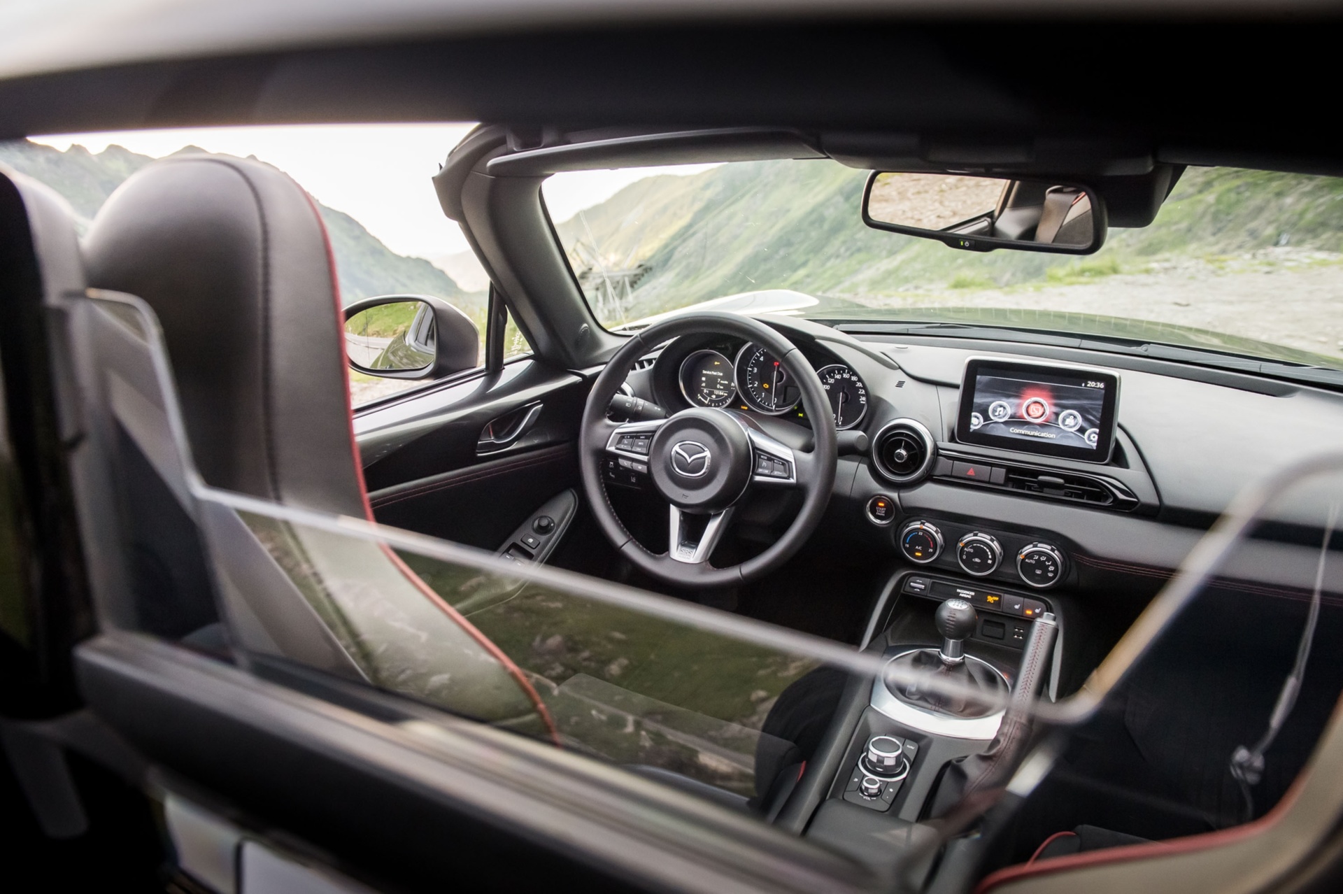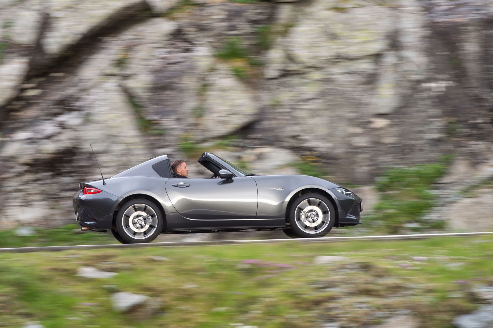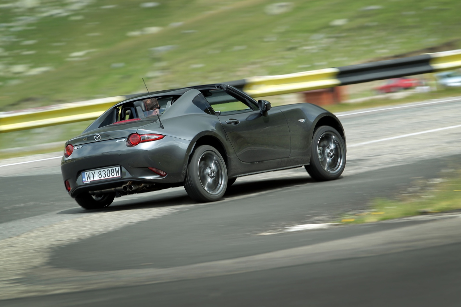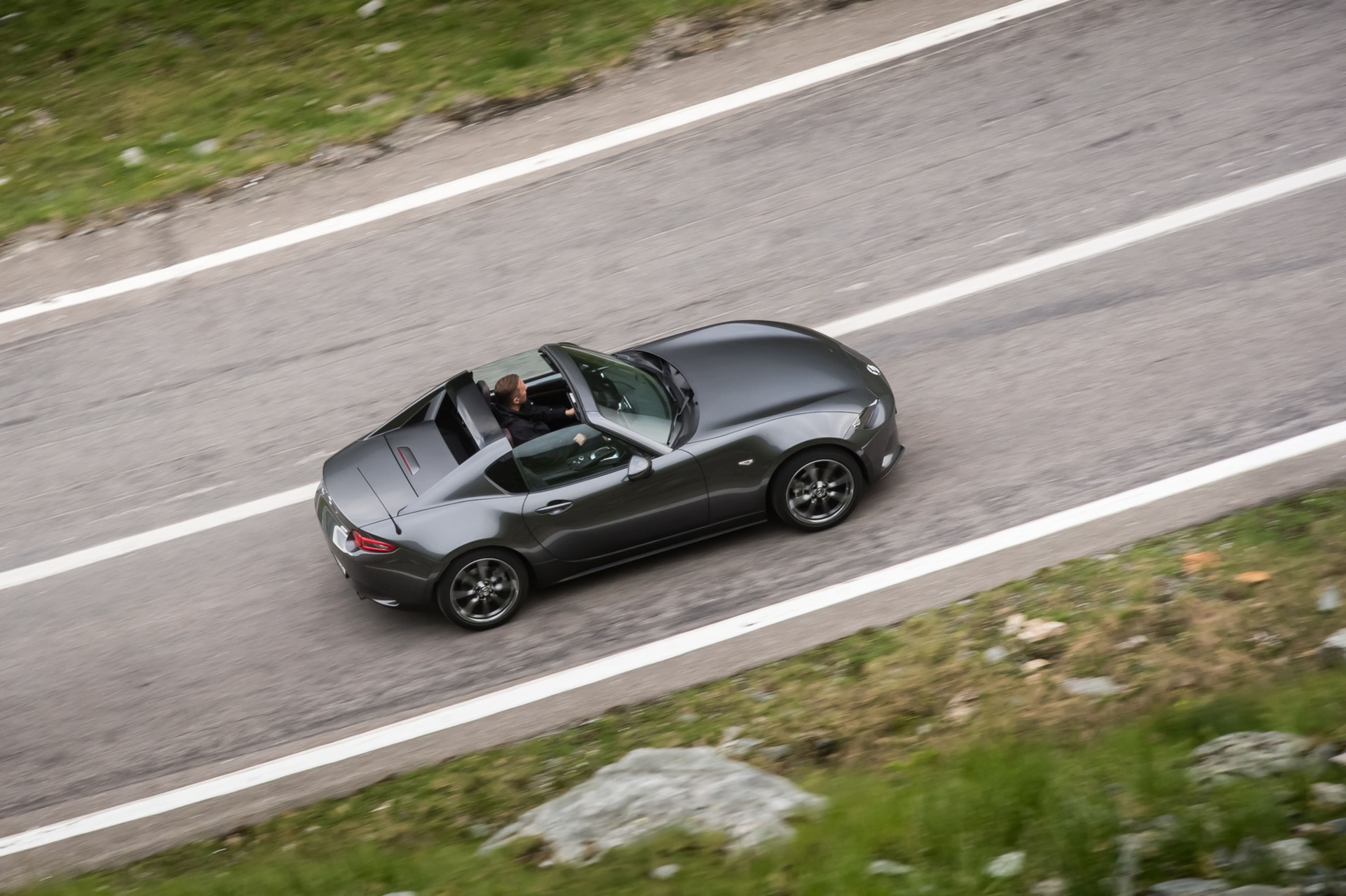 Спортната Mazda MX-5 RF притегля феновете на шофирането с приключенския си дух и за разлика от множеството спортни коли, основава чисто наслаждение от шофирането. Основна заслуга за тава има 2,0-литровият 4-цилиндров бензинов мотор с мощ 160 конски сили, който е подложен зад предния мост по този начин, че тежестта от малко над 1 звук на колата е с разпределено поравно сред осите. Перфектният скоростен лост е с къси ходове, което трансформира превключването на предавките в неподражаемо наслаждение. Повече от 150 километра карам през Карпатите и променям от втора на трета предавка и по-късно още веднъж се връщам на втора, с цел да посрещна идващия завой, от време на време с леко врътване на задницата.