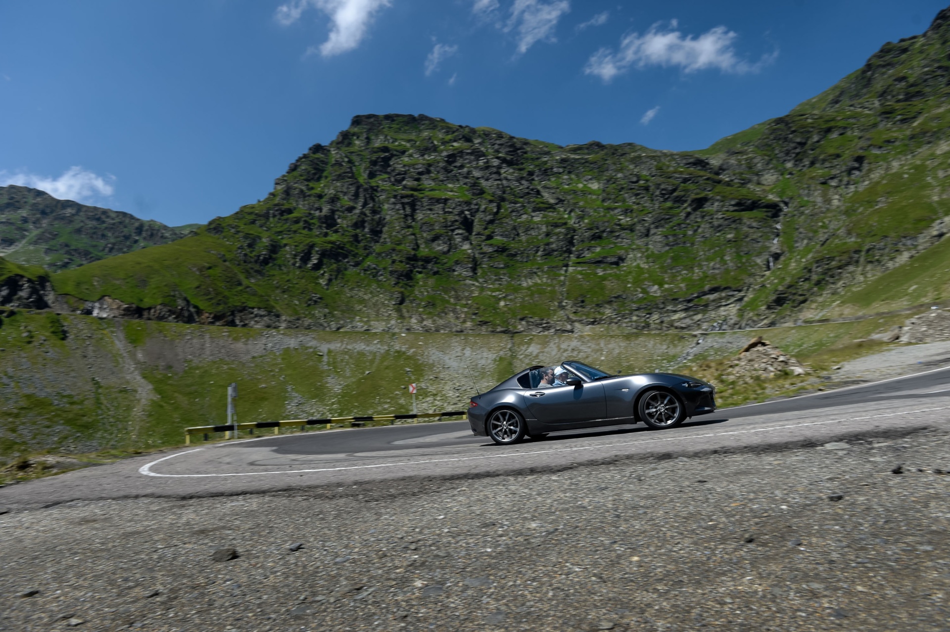 Безспорно Mazda MX-5 е една от дребното коли, основана за чистото наслаждение от шофирането. От началото на годината най-продаваният роудстър в света се предлага и с автоматизиран корав сгъваем покрив. Нарича се RF, което идва от Retractable Fastback. Новата Mazda MX-5 RF е оборудвана с една от най-бързите системи за прегъване и разгръщане на покрива. Той може да се отваря и затваря с натискане на бутон единствено за 13 секунди, даже по време на придвижване със скорост до 10 км/ч. Едва ли има по-добро място за тест-драйв на новата Mazda MX-5 RF от пътя Трансфагарашан в прилежаща Румъния. Щастлив съм, че имам опцията да пришпоря тъкмо тук тази играчка за пораснали деца, която поражда неописуемо наслаждение от шофирането. Mazda MX-5 RF е не просто съвършената кола за пресичане на Трансфагарашан - тя като че ли е основана за това да покорява завоите с неподправено възприятие за приятност.