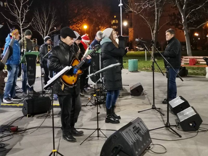 Пред коледната елха в парк „ Ружа “ музикантите, ръководени от създателя Николай Гешев, извършиха богата празнична стратегия. Сред осъществяванията имаше най-различни стилове – от типичен джаз, през обичани български шлагери до емблематични коледни песни. Оркестърът и солистът Едит Унджиян хвърлиха във екстаз публиката с осъществяванията си и подвигнаха съществено градуса на настроението в мразовитата декемврийска вечер.