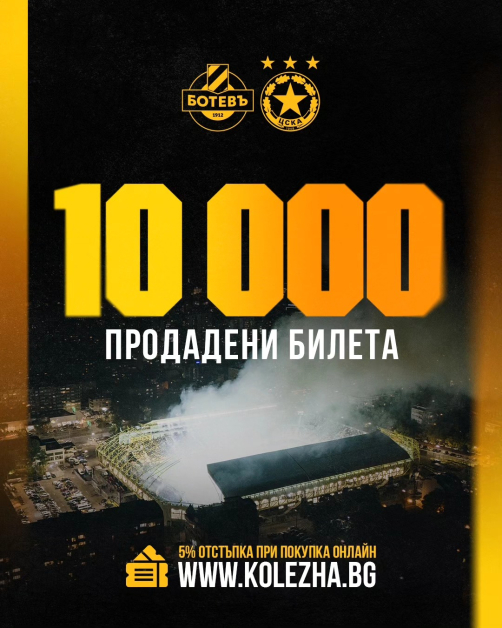 Билетите за реванша сред Ботев Пд и ЦСКА за Купата на България в Пловдив се купуват като топъл самун. За 3 дни са продадени 10 000 от скъпите хартийки. За това осведомиха от управата на " жълто-черния " клуб, който е хазаин на дуела.