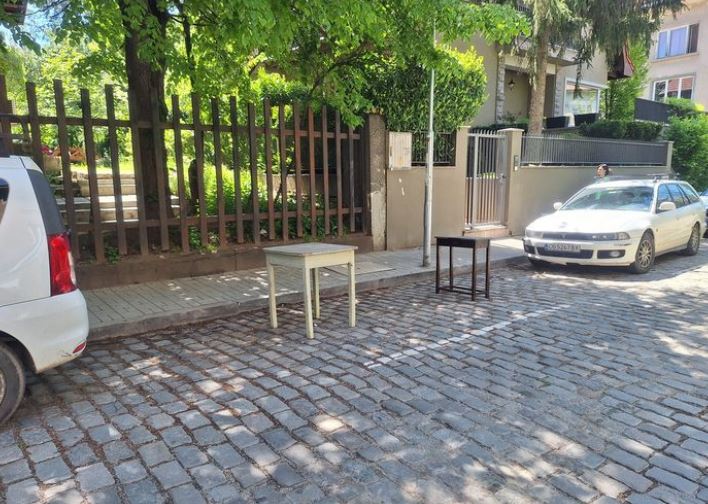 На улицат в София " цъфнали " цели две дървени маси. Те били сложени една до друга на софийския откъс, а локалните и за минута не се съмняват каква е ролята им.