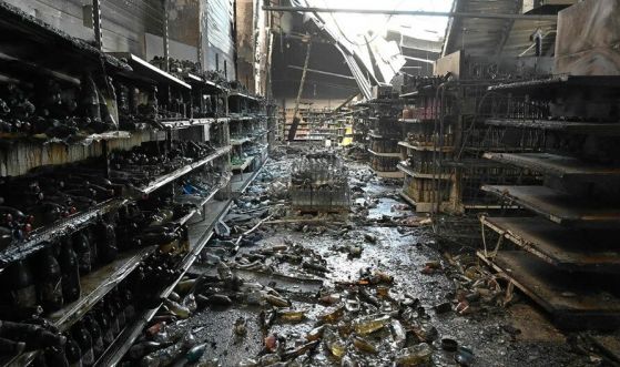 Изгорели артикули в търговски център " Амстор " в Кременчук, откакто е бил ударен от две ракети на 27 юни 2022 година Руското министерство на защитата заяви, че ударът е бил ориентиран към намиращ се наоколо склад за муниции. В резултат на обстрела са убити 13 души, а над 40 са ранени. Снимка: Агенция Франс Прес