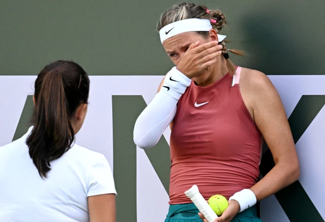 Първият сет на дуела от третия кръг на шампионата в Маями приключи при резултат 6:2 в интерес на чешката тенисистка, а във втория при 0:3 Азаренка напусна корта.
