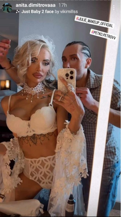 Анита разгласява видеа и фотоси от тържеството, на което е с обилна булчинска рокля, а двамата със брачна половинка ѝ изненадват гостите с забавен брачен танц при влизането им в ресторанта.