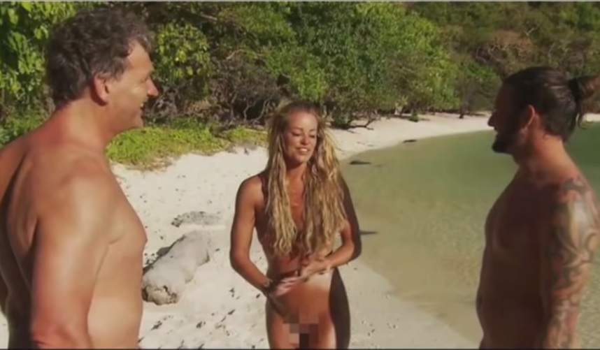 Действието се развива на остров в Танзания, а камерите към този момент уловиха холандката без никакви облекла.