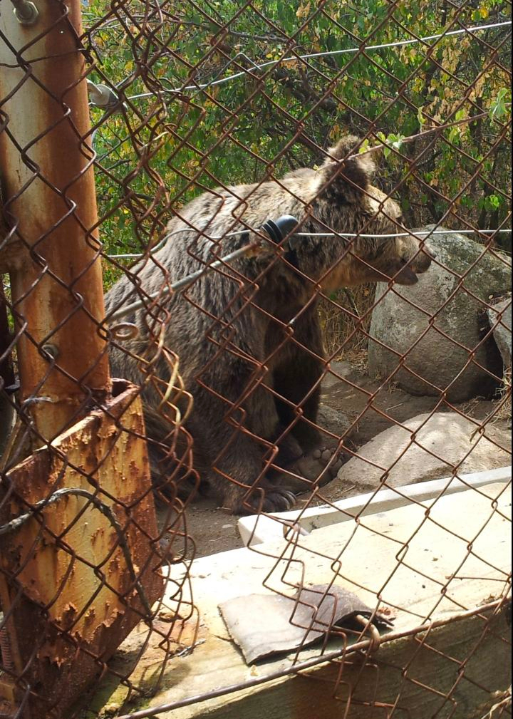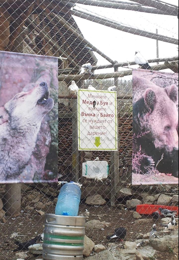 За прикритие на стопанската и комерсиална активност отглеждат една мечка е един вълк. Дивите животни, които наподобяват много зле, са затворени зад ръждясали решетки, а на оградата пред седи отрязано пластмасово шише за дарения.