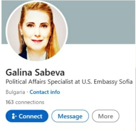 Както излиза наяве, дядото на Галина Събева е комунистът-активист от Сливен Съби Димитров, самоубил се през 1941 година Баща й, като правоприемник на славния болшевик, пък се урежда с посланическо място в Швейцария по времето на соца. Галина работи известно време като кореспондент за Ройтерс, само че откакто се задомява за американеца Кенет Лефковиц, се преориентира към работа в посолството на „ Козяк “.
