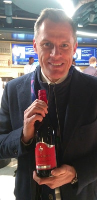 Бившият защитник на Ливърпул Джейми Карагър, който има над 700 мача за " алените ", е отворил българска бутилка с вино, от която е отпил огромна глътка в чест на 19-ата купа на отбора. Джейми получи въпросната бутилка през февруари в Лондон от българския ентусиаст Кирил Евтимов.