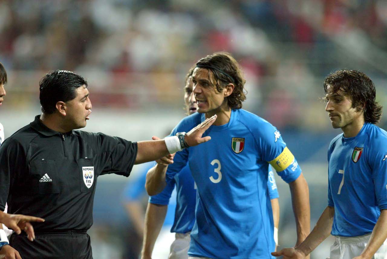 Кръвта по главата на Коко беше от негов контакт с Гатузо, а не поради удар на корейски играч. Относно ритника в главата на Малдини ще кажа, че имаше огромен куп от играчи, които ми попречиха да видя обстановката. Категорично нямаше нарушаване за дузпа против Тоти. Видях, че корейският защитник докосна първо топката, а по-късно играча. Спогледахме се с моя помощник и се разбрахме - беше " гмуркане ".