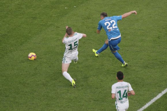 Питерци бързо се настаниха в противниковата половина и в 4-ата минута Леандро Паредес получи опция да обстрелва вратата на Евгений Городов от статично състояние. Ударът на аржентинеца беше задоволително мощен, само че стражът на гостите сподели добър инстикт и мазета. Не след дълго и Артьом Дзюба опита да преодолее Городов, само че топката мина над напречната греда.