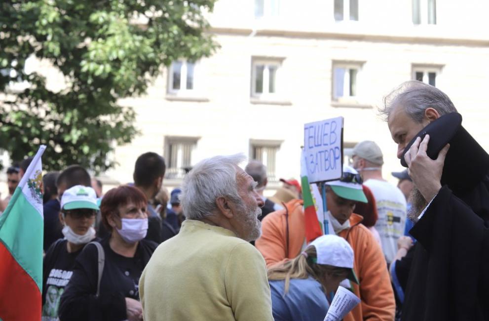 Недалеч от тях застана и някогашният народен представител от Българска социалистическа партия Славчо Велков, както и други политици от левицата. Тук беше и безконечният протестиращ Йоло Денев.