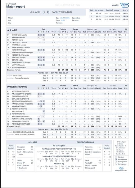 42-годишният Супер Бобо заби 18 точки (1 ас, 68% успеваемост в офанзива - +15) за триумфа на своя Арис (Солун) над Панеритрайкос (Атана) с 3:0 (25:12, 25:18, 25:21) в мач от 4-ия кръг във Висшата лига.