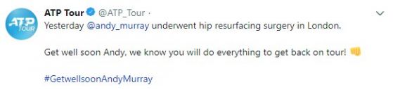 Междувременно от ATP пуснаха обява в поддръжка на Мъри, в който му пожелават бързо възобновяване. " Всички ние знаем, че ще направиш всичко належащо, с цел да се завърнеш ", пишат от мъжката федерация по тенис.