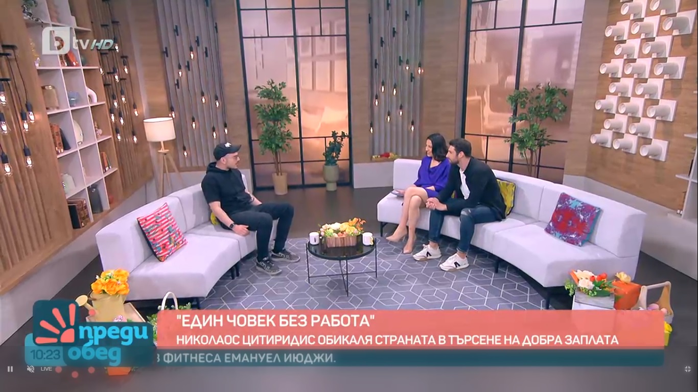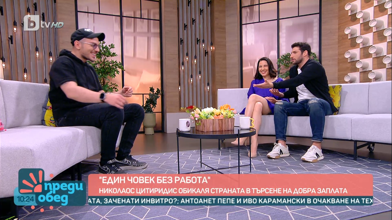 Бившият водещ в БТВ Николаос Цитиридис разкри какво се случва с него през последните месеци, откогато не е вечер на екран. " За хубавите неща пари трябват ли? Не. За фитнес трябват ли пари? Не - отиваш, скачаш, бягаш, спортуваш. За обич трябват ли пари? Зависи от дамата и половинката, популярност Богу, моята е извънредно бюджетна. Актриса (бел.а. Боряна Братоева), привикнала е на малко и ми е елементарно. Нямам пари за другото, тъй като всичко е в барабаните ", разкри той.