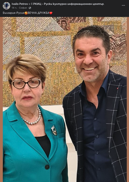 Бившият вратар на ЦСКА Ивайло Петров - Пифа разгласява във " Facebook " фотография с съветския дипломат Елеонора Митрофанова. Любимецът на бранш " Г " пусна фотография с дипломата от съветския културно-информационен център на улица " Шипка " в София и написа " България - Русия, безконечна дружба ".