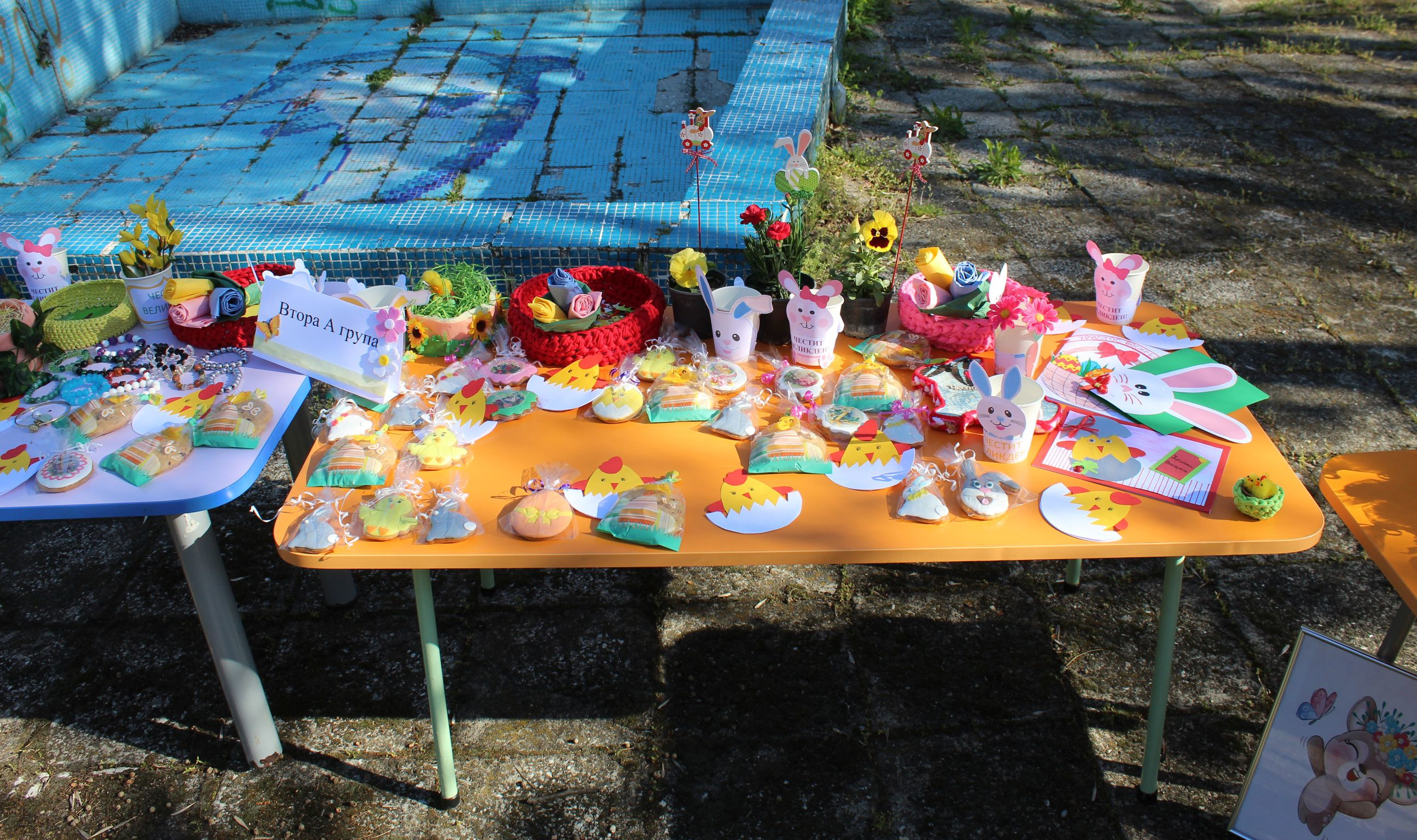 Благотворителен Великденски базар е разположен в двора на ДГ „ Бреза “ в регион „ Северен “, проведен в помощ на децата със Синдром на Даун от Фондация " UP WITH DOWN ".