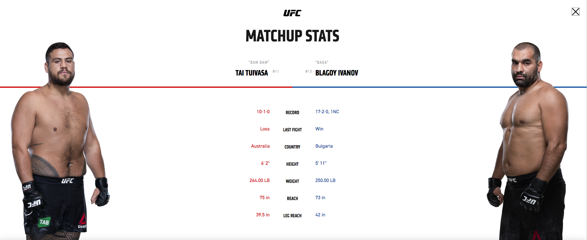 Австралиецът (8 победи, 7 с нокаут и 1 загуба) разчита на непрекъсната експанзия и тежки удари. Той има още два мача от своя контракт с UFC, което значи, че ще има спомагателна мотивация да се потвърди, с цел да остане в организацията. Не е инцидентен фактът, че букмейкърите дефинираха за лек любимец Туиваса. Контрактът на българина е за 6 срещи, като две от тях към този момент минаха.