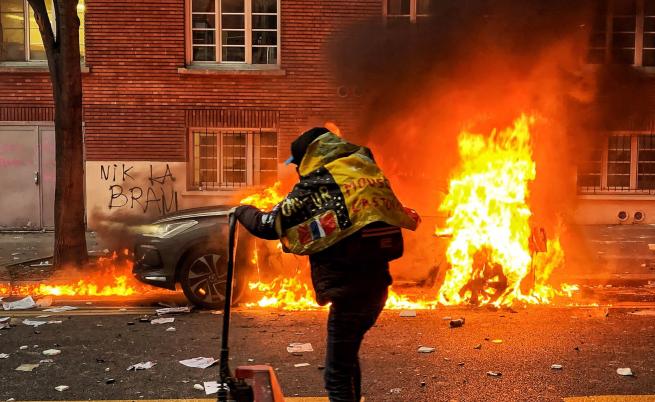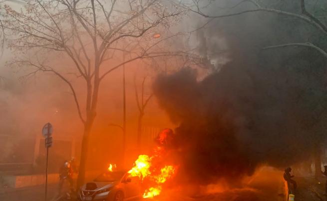 Сблъсъци в Париж: Сълзотворен газ, горящи автомобили и повредени сгради