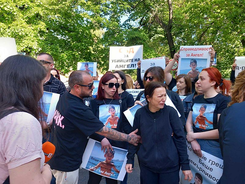 Със викания " Убийци ", " Искаме съд ", " Реформи в опазването на здравето! ", " Върнете ни Ангел! " ядосаните хора започнаха да хвърлят бутилки с вода и счупиха едно от стъклата на входа на клиниката.