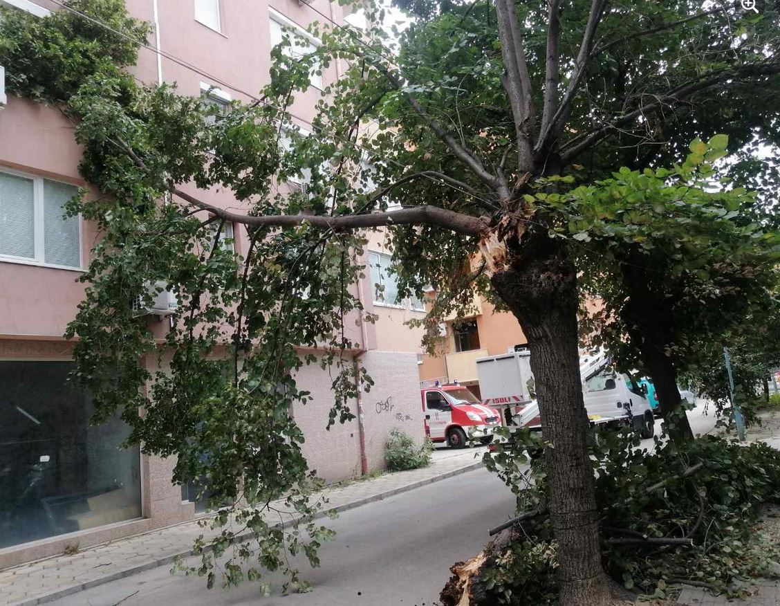 В два от случаите става въпрос за материални вреди. При част от сигналите за премахване на рисково надвиснали клони се постанова подпомагане на полиция, защото под дърветата има паркирани коли, което изисква издирването на притежателите им, с цел да бъдат преместени. Екипи на пожарната и " Паркове и градини " работят по сигналите.