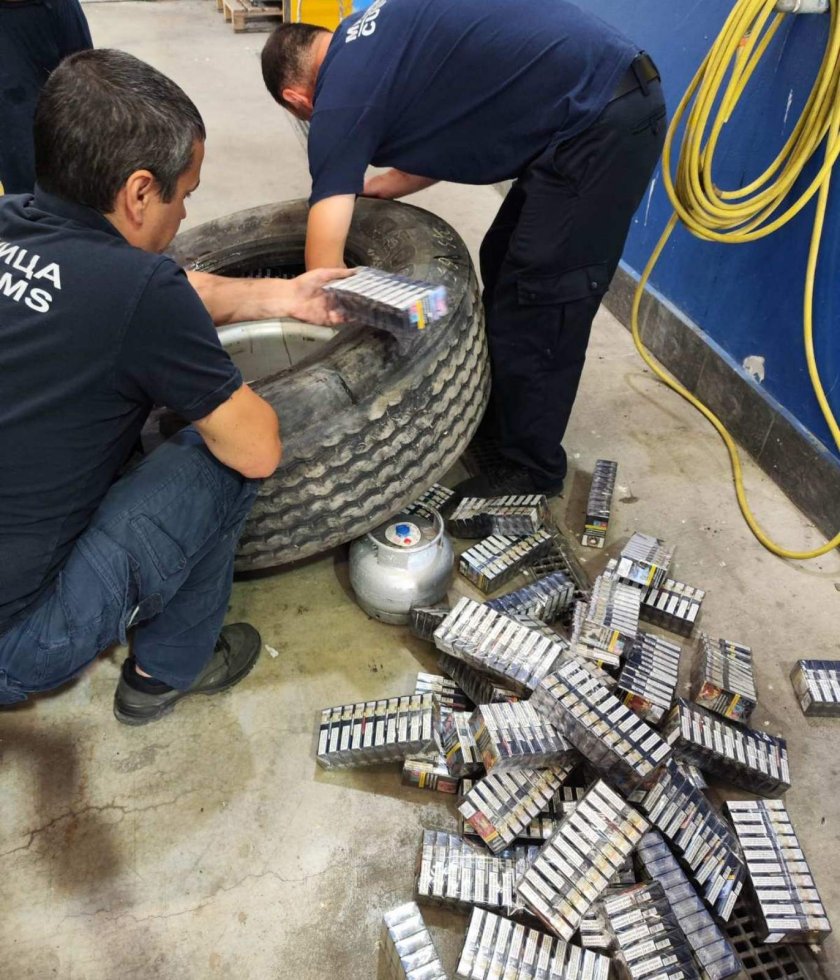 Задържаха контрабандни цигари в гуми на камион в Русе