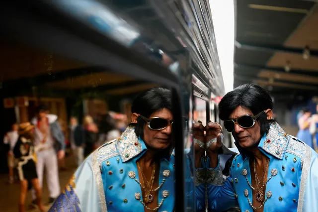 Имитаторите пеят песните на Елвис и танцуват. Другите са пристигнали просто да се позабавляват.