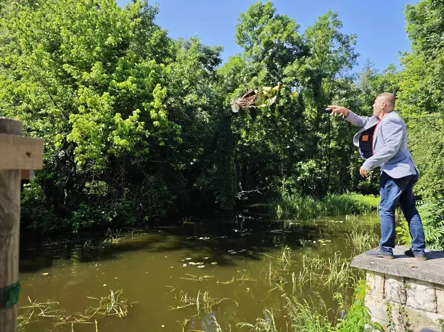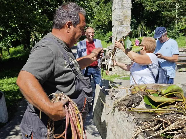 „ Методите за засаждане са два – с влизане във водата или от разстояние с прикрепване на водна тежест към корените на растението. Днес използваме втория способ, тъй като равнището на водата в езерото е над 1,50 м и няма опция да се влезе вътре. При водните тежести корените на растението падат към дъното и след това се вкореняват. Средата на езерото към този момент е подобаваща за водните лилии, има нужния нанос. Миналата година пробно поставихме тук 20 цвята и 10 от тях към този момент ни радватс хубостта си ".