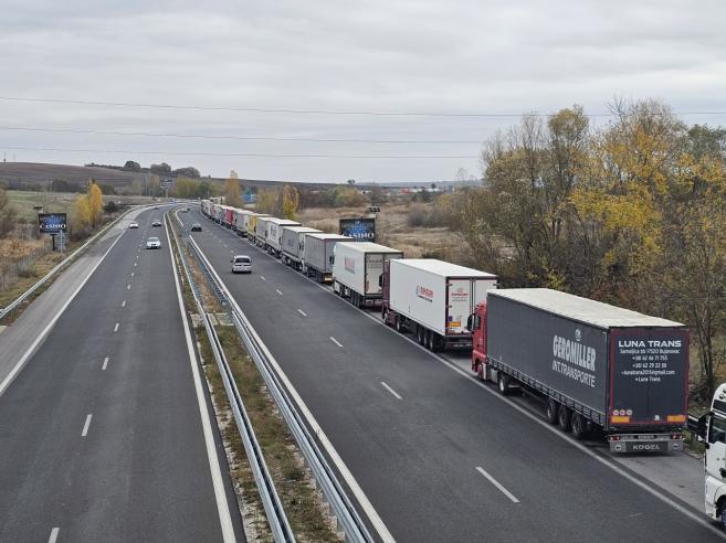 Близо 40 км опашка от камиони пред ГКПП Капитан Андреево