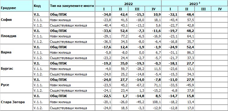 Големият растеж идва след почти 20% спад, регистриран през интервала януари-март на база последното тримесечие на 2022 година. Иначе по отношение на равнищата от предходната година, а точно април-юни 2022, през второто тримесечие на 2023 година даже се следи лек спад от 2,4% от цената на покупко-продажбите с парцели.