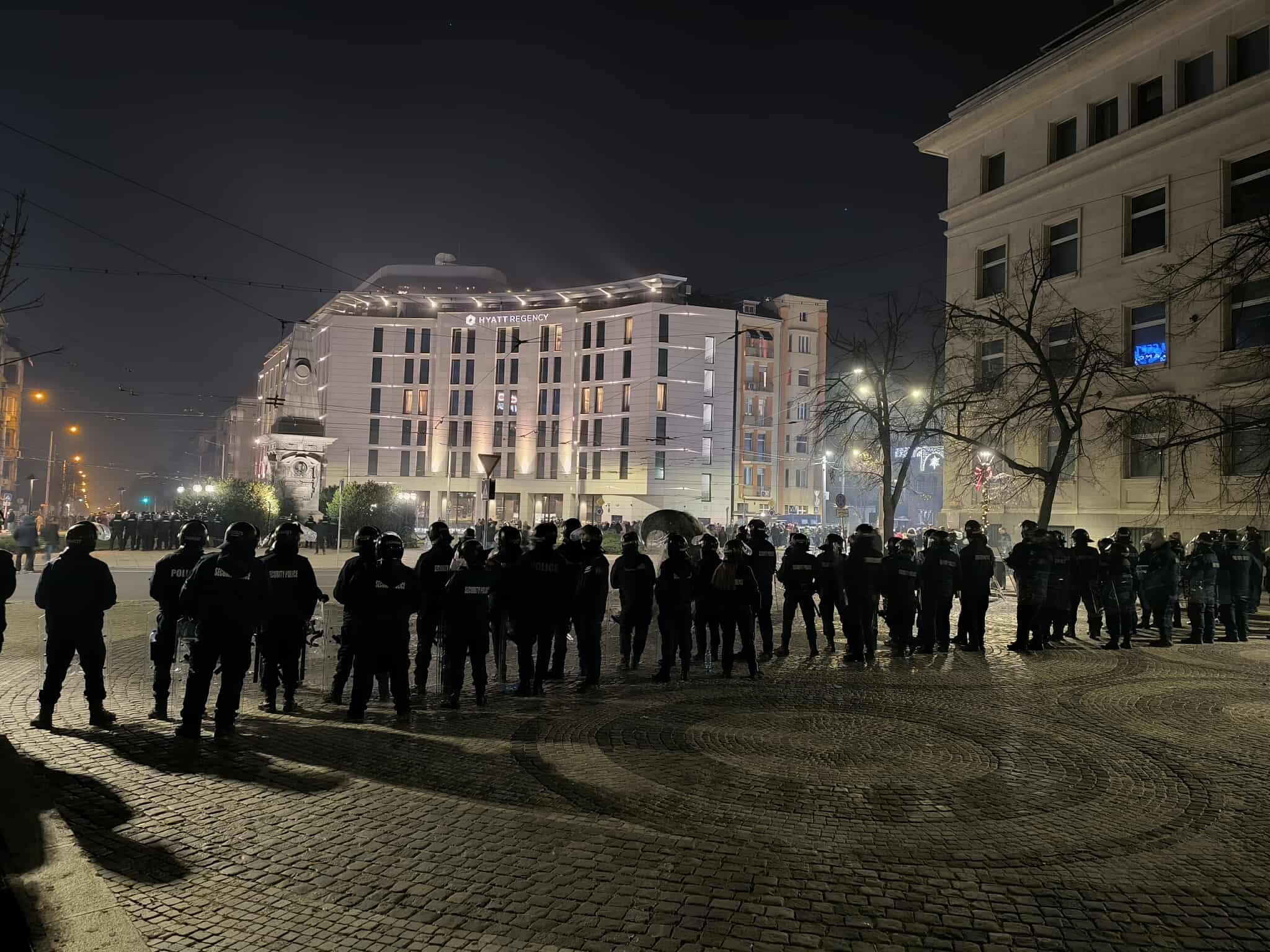 Репортерите на Mediapool видяха, че полиция с щитове е отделила целия регион на паметника на Васил Левски.