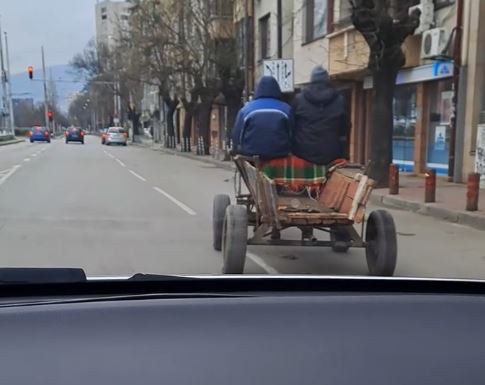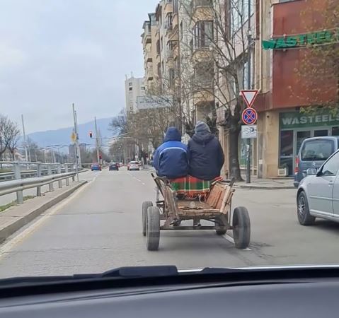 Съвсем скоро по-късно жители попадат и на друга каруца, която без боязън, само че и мигачи заобикаля паркирани коли в трафика на столицата. Кадри от проявата биват публикувани в обществените мрежи.