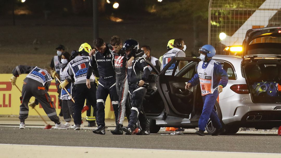 Французинът се заби челно в мантинелите малко след старта на Гран При на Бахрейн през 2020 година, което докара безусловно до разединение на неговата кола на два, а след това тя се възпламени. Грожан прекара 27 секунди в пламъците преди да се измъкне благодарение на лекар Иян Робъртс и пожарникарите край пистата, разминавайки се единствено с изгряния по ръцете и ходилата.