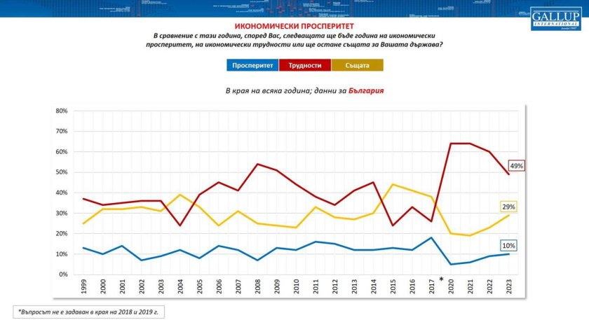 Близо половината от българите считат, че 2024 година ще е още по-проблемна за международния мир. Също толкоз чакат следващата година да имат финансови усложнения.