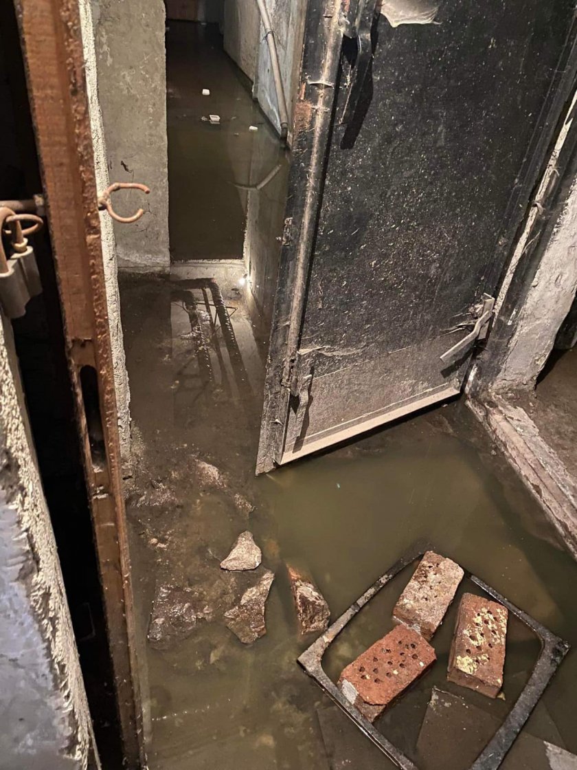 - Второ, помпата на парното на блока аварира вследствие наводняването ѝ в мазето, само че до нея нито един механик не може или не желае да стигне, тъй като би трябвало да мине през мръсната вода на наводнените изби. По този метод блокът остава и без парно!
