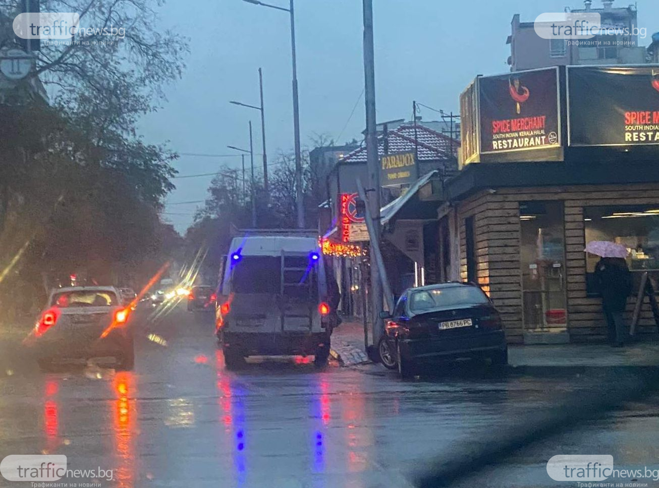 БМВ се удари в дирек на кръстовището на бул. „ Васил Априлов “ с „ Пещерско шосе “, алармира четец на TrafficNews. Най-вероятно случаят е станал поради неработещият светофар на натовареното кръстовище.