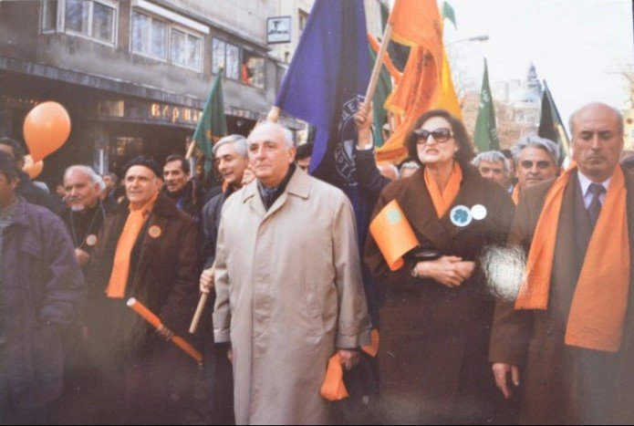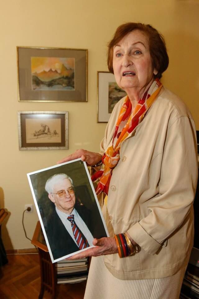 Мозер демонстрира снимка на починалия си брачен партньор Чарлз Мозер в софийския си дом. Снимка: Агнес Методиева