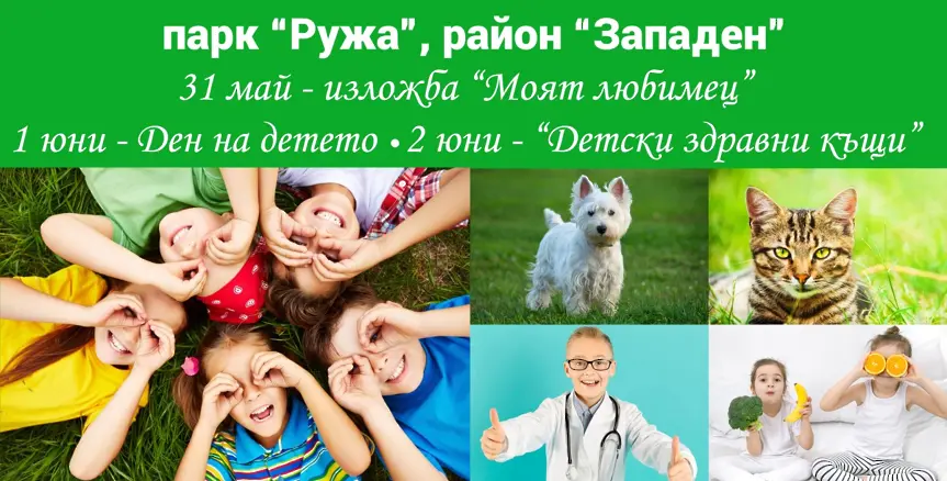 А в регион Западен от през днешния ден стартират тридневни детски празненства в парк “Ружа ”. За първи път се провежда изложбата „ Моят любим “, която се открива през днешния ден от 17:30 ч. Децата ще ни срещнат със своите кучета и котки, с които съжителстват. Д-р Костадин Шанков ще даде потребни препоръки по какъв начин да се грижат за тях. Утре, 1 юни ще бъде маркиран уместно с доста спортни игри и въодушевление, децата в парк “Ружа ” ще рисуват на тематика „ Моето лято ” или „ Моят празник ”.