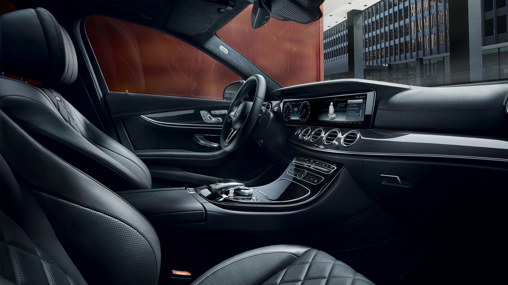 В интериора всичко е доста по-луксозно от предишното потомство E-Class и приликите с S-Class са на всички места. По продължение на цялото табло са интегрирани два внушително изглеждащи екрана, всеки с по 12.3 инча размер, от които можете да управлявате всичко, за което се сетите. Начинът, по който самото табло е облечено в кожа, и вниманието към алуминиевите елементи и приложенията от естествено дърво внушават на пасажерите възприятие за разкош и улеснение при пътуването. Размерът на багажника е повишен до 540 литра, с което към този момент е водещ в класа и добавя общото израстване на модела.